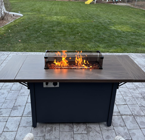 OSOS 45” Propane Gas Fire Pit Table Glass Top with Lid & Fire Rocks