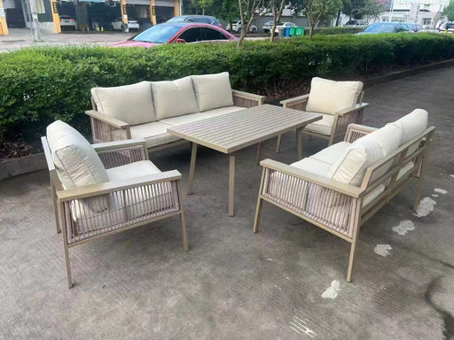 OSOSOut of stockDETAILS: SPACIOUS & FUNCTIONAL: This 6 piece Aluminum outdoor set includes 1 Couch, 2 Chairs, Loveseat, Dinning table and Bench! Plenty of...