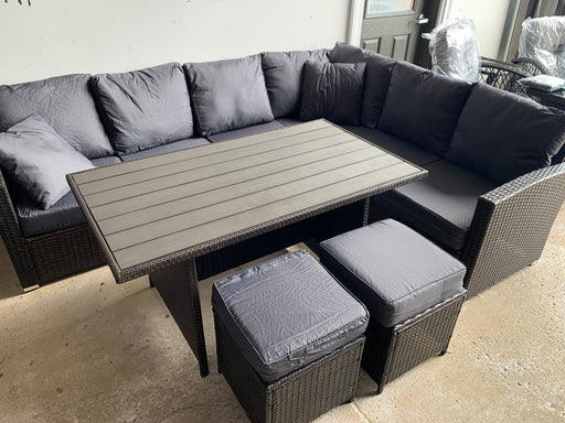 OSOSLow stockDETAILS: SPACIOUS & FUNCTIONAL: This 5 piece wicker rattan outdoor dining set includes 3 ottoman seats, a L shape couch, and dining table. ...